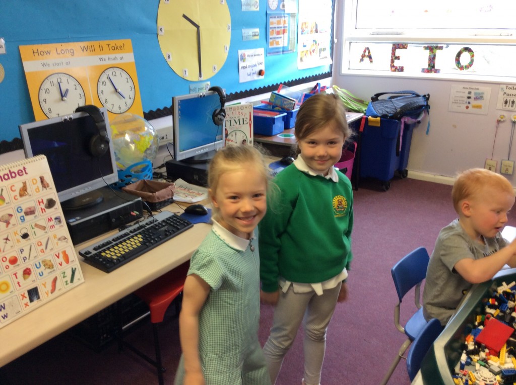 Leah and Aimee practise their lining up.